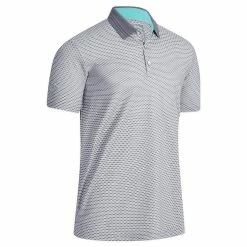 This Callaway Grid inspired print polo with contrasting mini chevs, textured collar with ribbing detail and 3 button placket and features a swing tech.