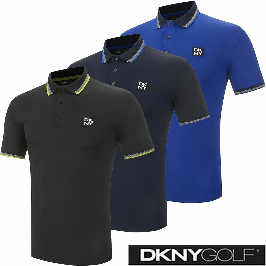 DKNY Golf Mens Broadway Performance Moisture Wicking Stretch Golf Polo Shirt