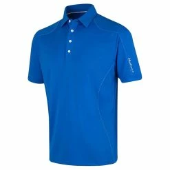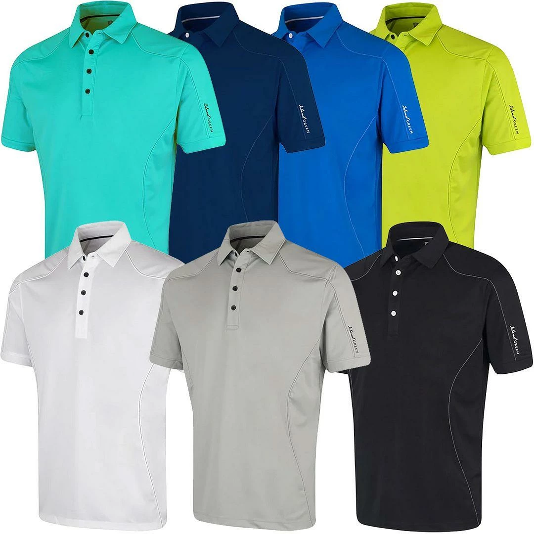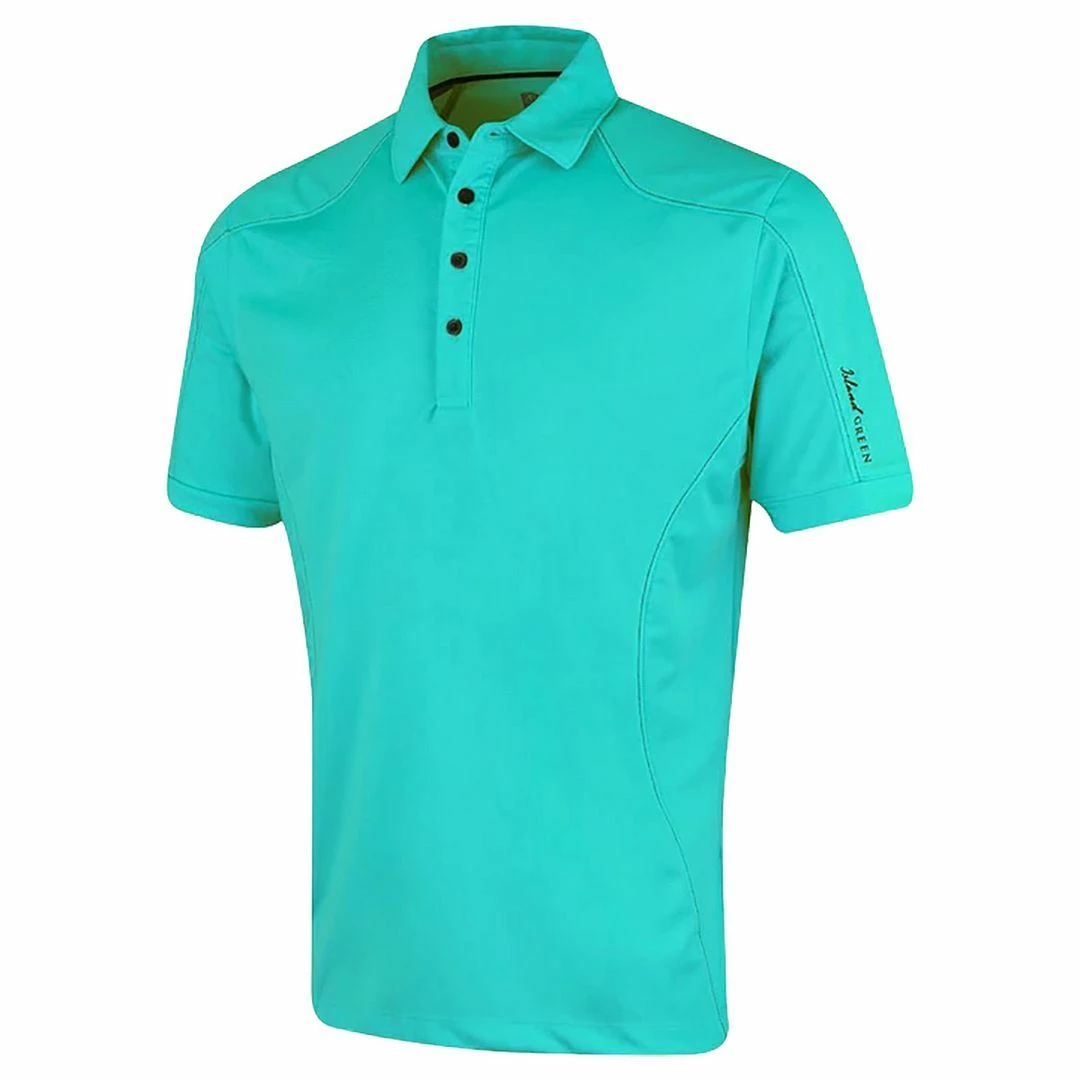 Island Green Logo Sleeve Contrast Button Placket CoolPass Performance Mens Golf Polo Shirt