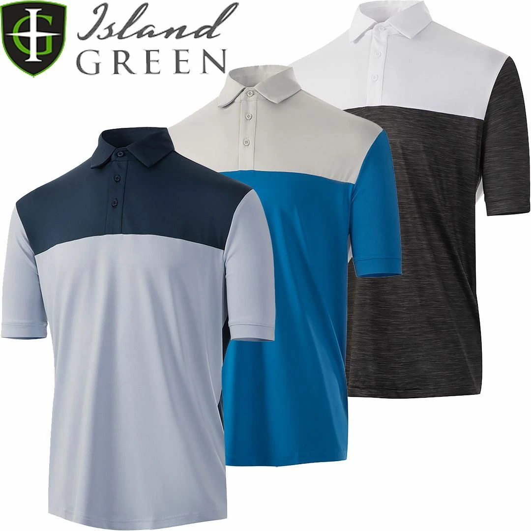 Island Green Mens Colour Block Coolpass Moisture Wicking Golf Polo Shirt