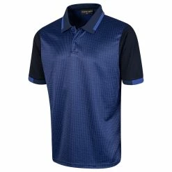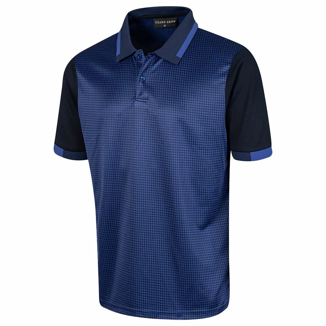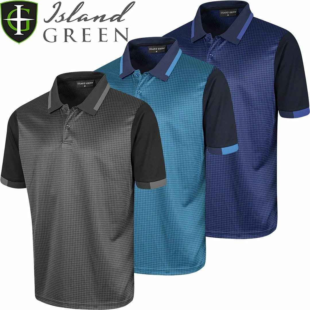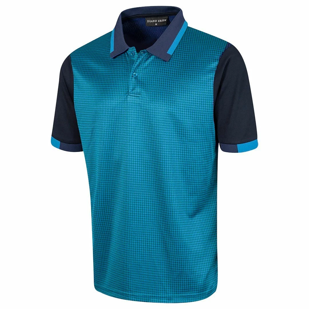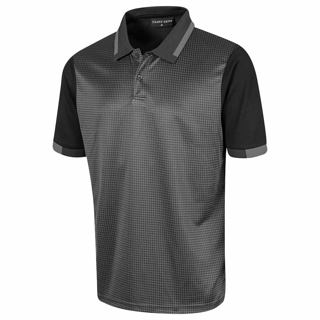 Island Green Mens Dog Tooth Check Coolpass Moisture Wicking Golf Polo Shirt